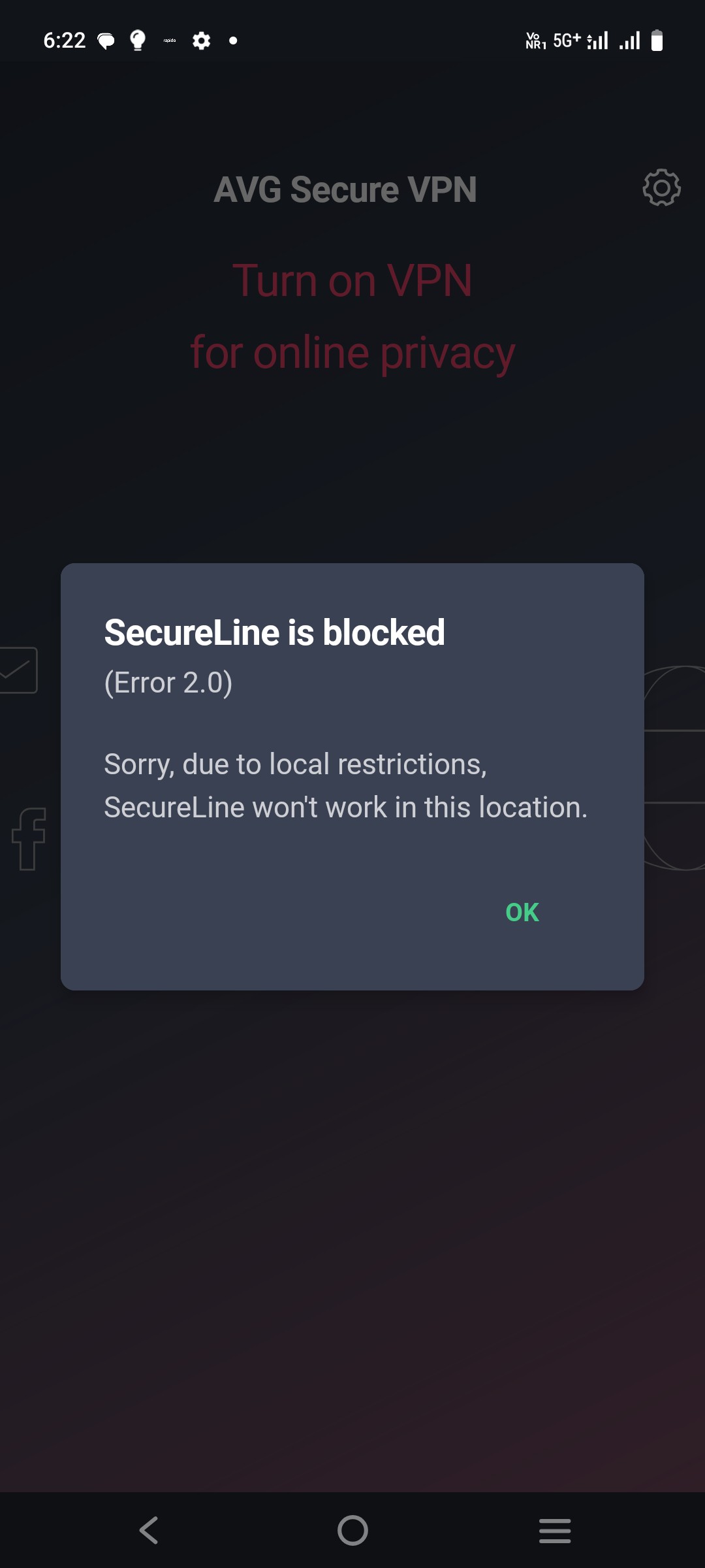 “SecureLine is blocked (Error 2.0). Sorry, due to local restrictions, SecureLine won’t work in this location.”