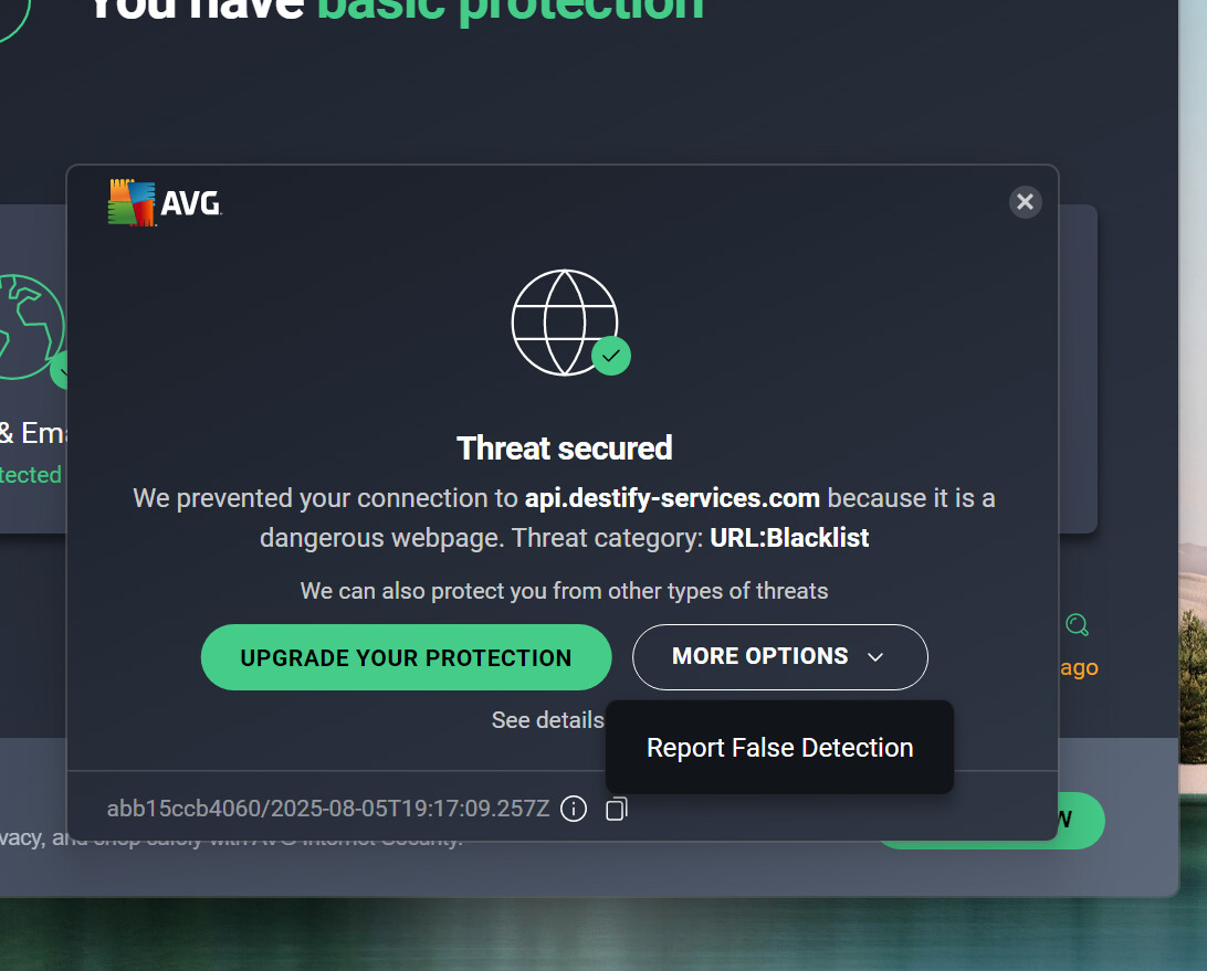 Flase detection for a site i am using for my wedding. I’ve reported it as a "False Detection and have waited for 24 ours per the prompt.. twice. I have also added the site to the Exclusions list under Settings. AVG will not let me in the site even though I could use it freely a couple weeks ago.