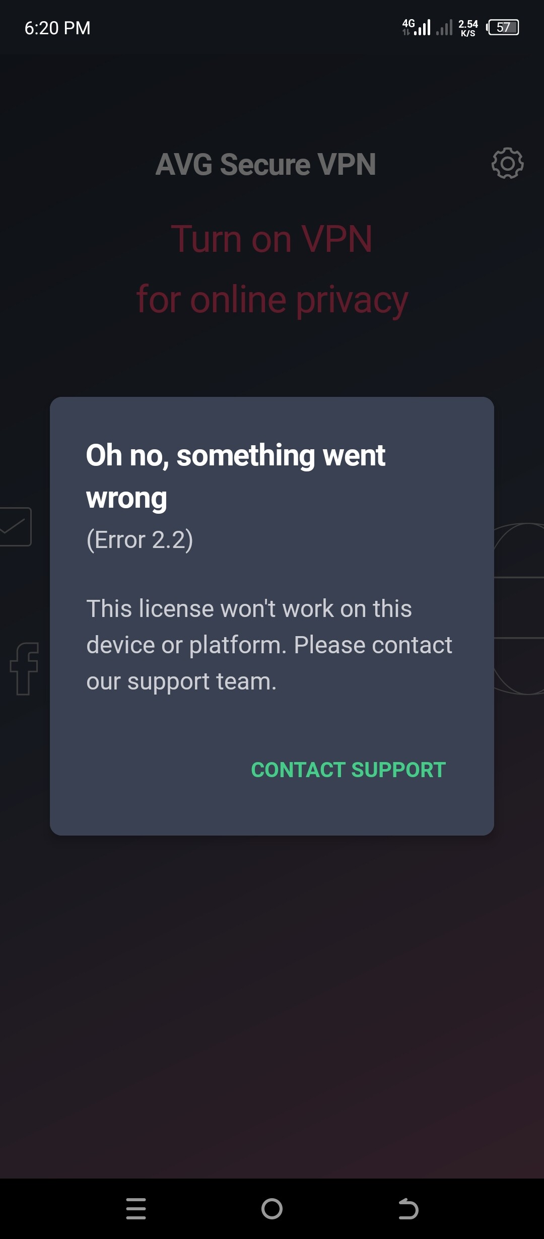 I’m trying to enter my AVG app but it isn’t working, it keeps telling me that “ oh no, something went wrong”.