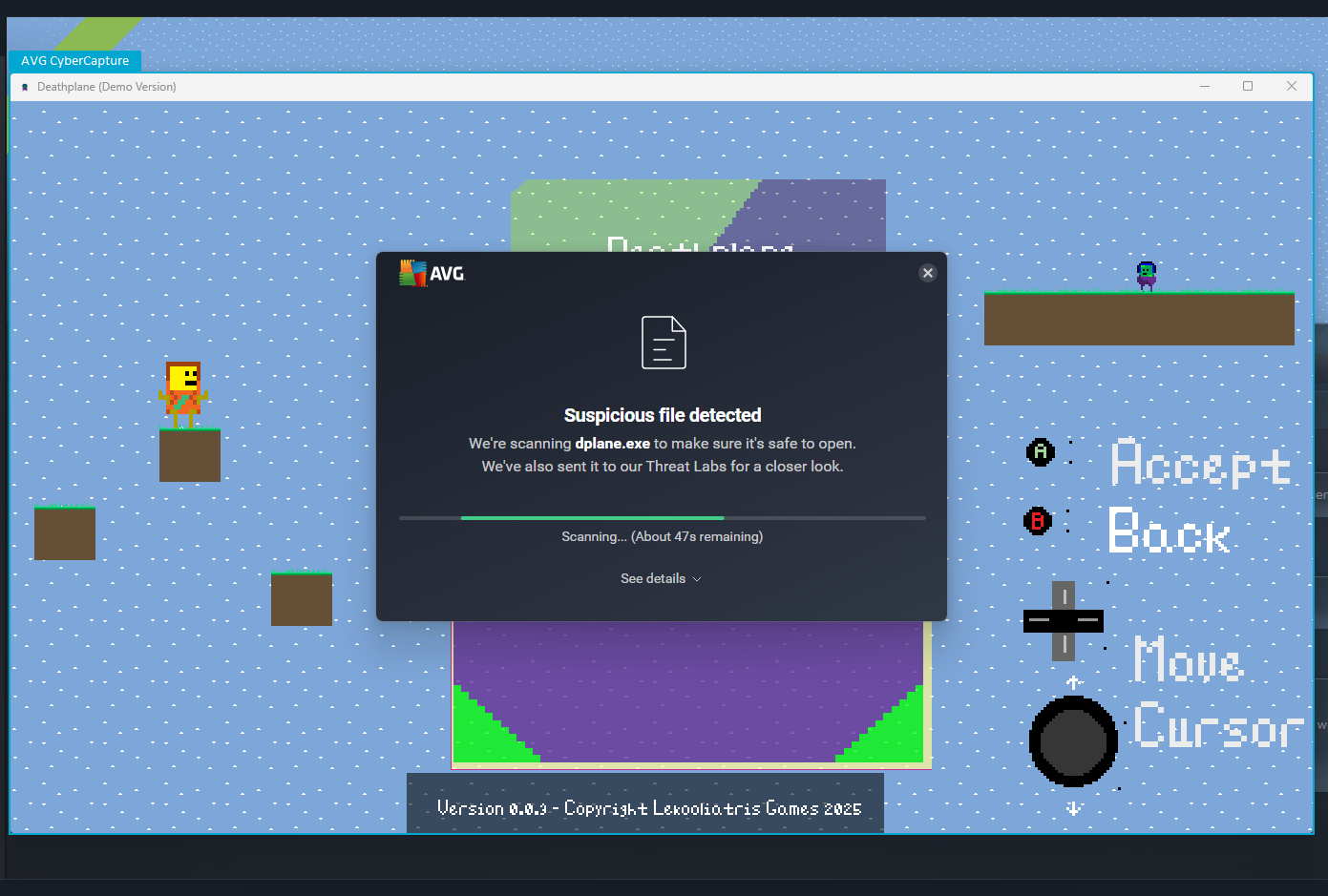 Or decide that there’s an anonymous trojan and close the game and quarantine the file. Which I am VERY concerned about.